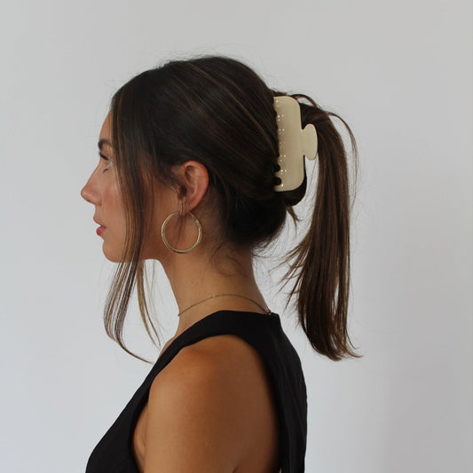 I absolutely love this claw clip! It's the perfect size for holding my hair securely all day without slipping. The grip is strong but gentle, and it doesn't pull on my hair like other clips I've used. The design is sleek and stylish, making it a great accessory that goes with any outfit. I can’t recommend it enough – it’s become a staple in my daily routine!